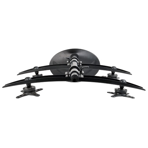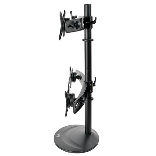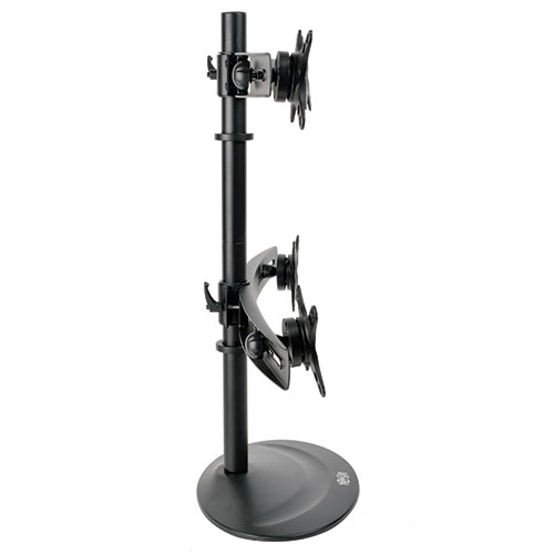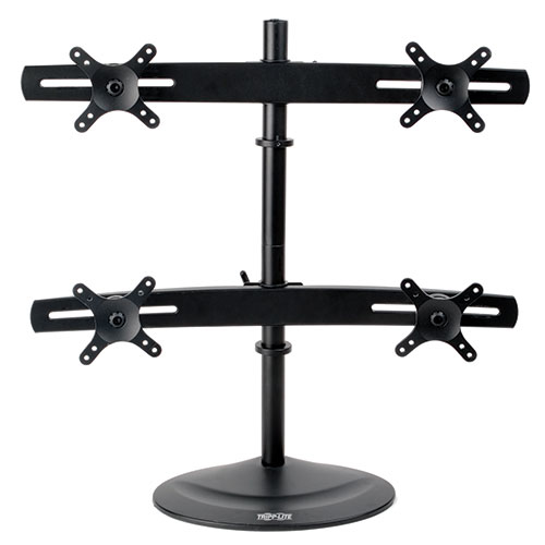 The VESA-compliant DDR1026MQ Quad Monitor Mount Stand mounts up to four monitors on a sturdy base, allowing you to free up valuable workspace on your desk, table or workstation. Ideal for home and office, the DDR1026MQ fits most flat-panel displays from 10 to 26 inches. Position your monitors with one-touch ease to optimize viewing angle and height to fit your environment and comfort level. A 180° swivel and -15° to +15° tilt capability minimizes glare and provides comfortable viewing from multiple angles. A 360° rotation lets you view your monitors in portrait or landscape orientation. Each mount supports up to 13.6 kgs (30 lbs.) The durable all-metal frame with scratch-resistant powder-coated finish tolerates frequent handling and blends with any décor. Mounting hardware is included. Conforms to VESA-compliant displays with any of the following mounting hole patterns: 75 x 75 mm and 100 x 100 mm.