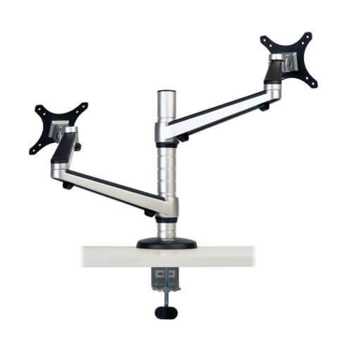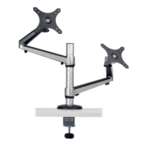 The VESA-compliant DDR1327DCS Dual Full Motion Flex Arm Desk Clamp attaches to your desk, table or workstation, allowing you to mount two monitors above it and free up valuable workspace. Ideal for home and office, the DDR1327DCS fits most flat-panel displays from 13 to 27 inches.