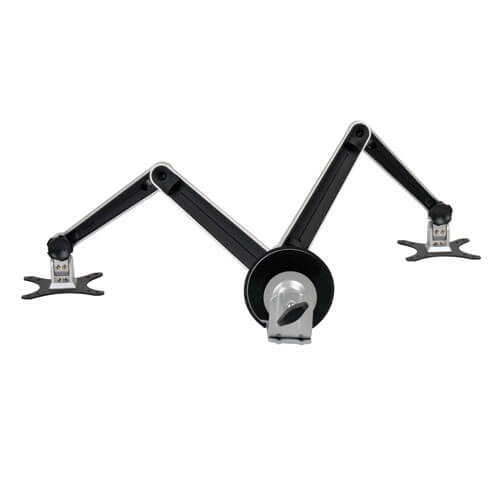 Dual swivel arms can be independently adjusted for angle and height to give you maximum flexibility in positioning your monitors to fit your environment and comfort level - Note: Arms cannot be positioned directly across from each other.. Move a screen closer to you, or push both screens out of your way when not in use. A 180° swivel and -80° to +90° tilt capability minimizes glare and provides comfortable viewing from multiple angles. A 360° rotation lets you view your monitors in portrait or landscape orientation.