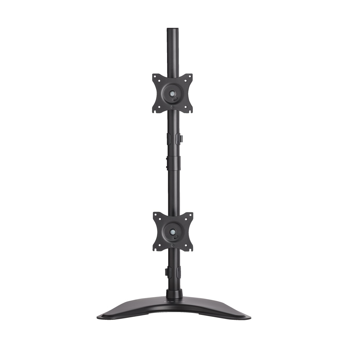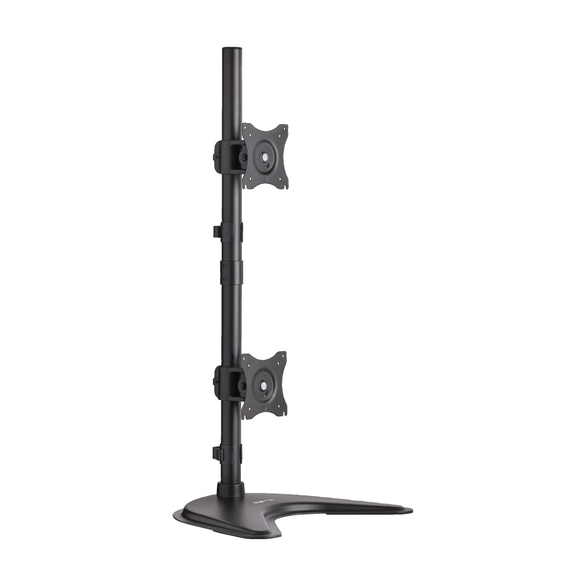 Each mounting plate supports flat-panel displays up to 18 lbs (8.2 kgs). The durable all-metal frame with scratch-resistant powder-coated finish tolerates frequent handling and blends with any décor. Included cable clamps organize cables and secure them to the vertical pole to prevent clutter. Mounting hardware is included. Conforms to VESA-compliant displays with hole patterns of 75 x 75 mm and 100 x 100 mm.