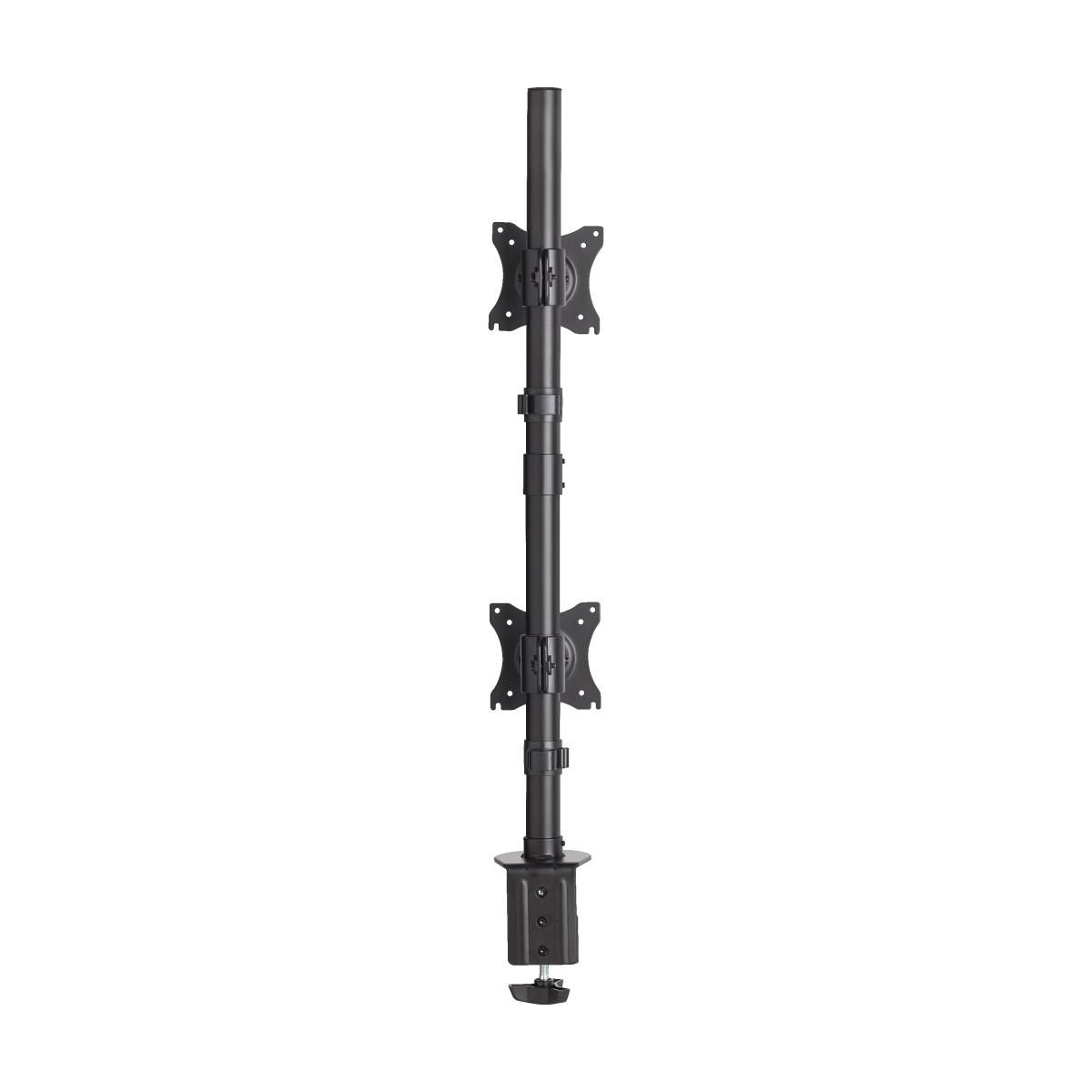 The VESA-compliant DDR1527SDC Dual Vertical Flat-Screen Desk Stand/Clamp Mount frees up valuable space on your desk, table or workstation by allowing you to mount two flat-panel displays on a vertical pole. Ideal for home or office, the DDR1527SDC fits most flat-panel displays from 15 to 27 inches. You can use it as a desktop stand or clamp it to a flat surface up to three inches thick.