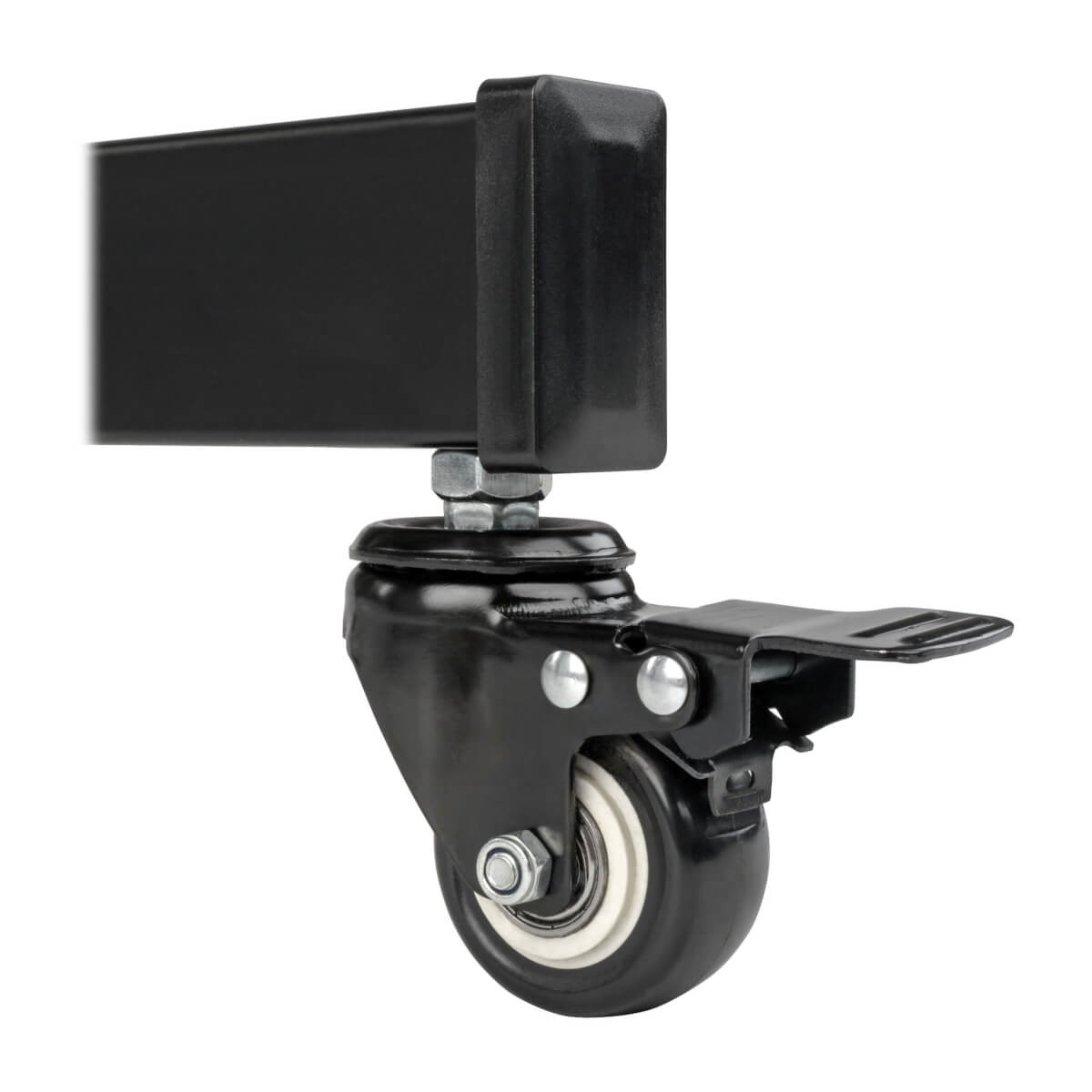 Four sturdy swivel casters provide smooth rolling through doorways and over thresholds, making it possible to share dual screens within a facility instead of purchasing multiple setups. When not in use, the cart can be rolled into a secure area for storage. The casters lock to keep the cart in position while at rest.