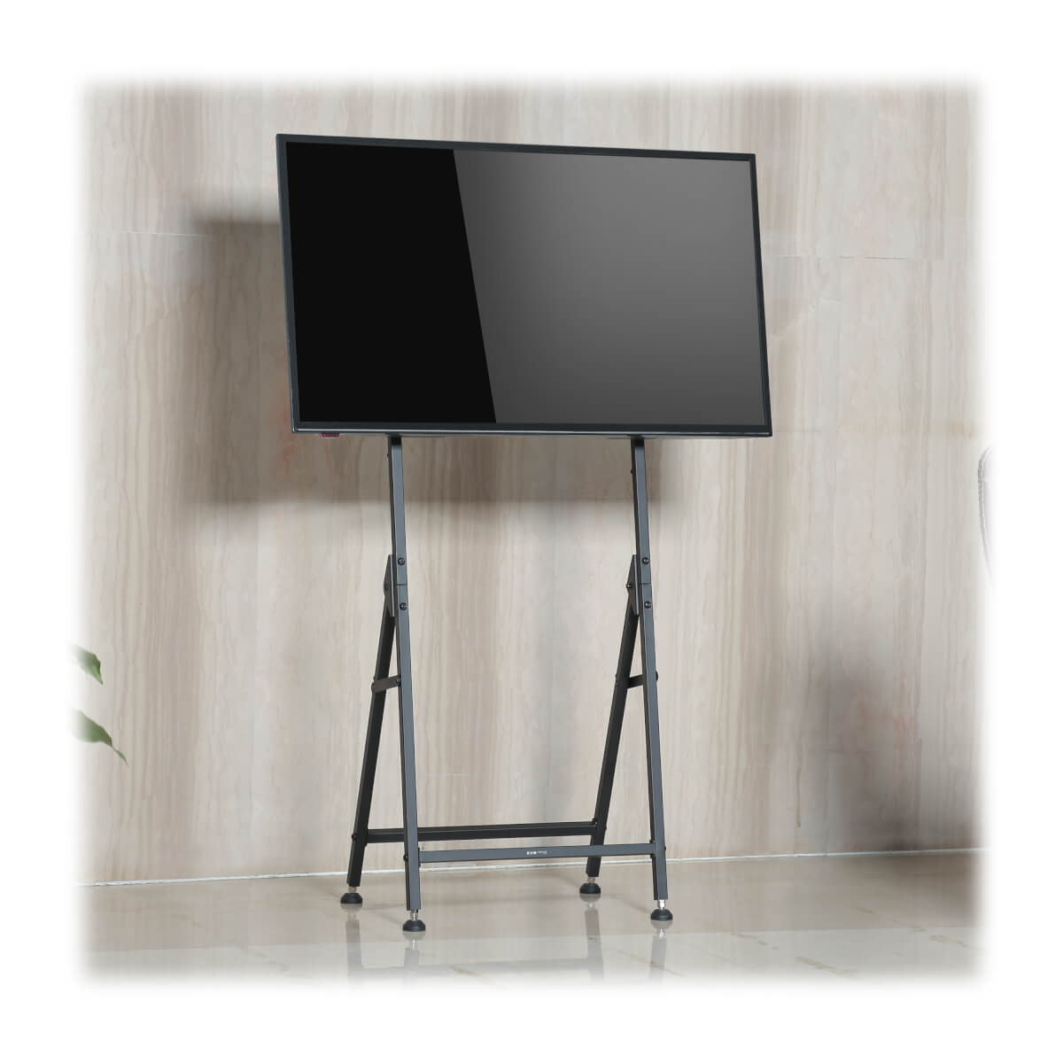 This portable TV stand fits most flat and curved-panel displays, whiteboards and monitors from 32 to 55 inches (81 to 140 centimeters). Once assembled, it folds easily to allow convenient setup wherever foot traffic flows, such as classrooms, trade shows, lecture halls, offices, auditoriums, restaurants, bars and hotels. The DMPDS3255F supports both portrait and landscape orientations.