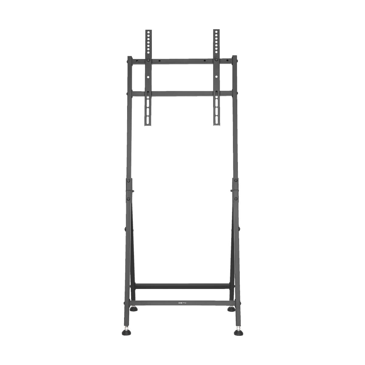Equipment cables route through clips on the stand’s legs to keep them organized and out of the way. Adjustable feet ensure your display remains level on a stable surface.
