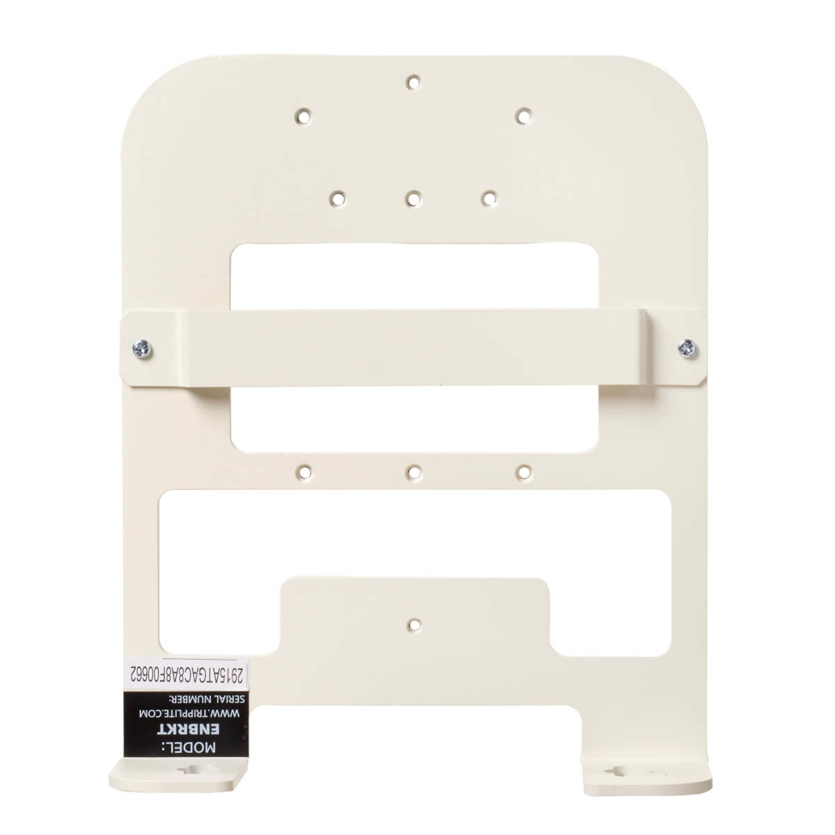 The ENBRKT fits most access-point bolt patterns and is compatible with Cisco low-profile and universal brackets. It also comes with a T-bar bracket for mounting Aruba and other WAP brands. Hardware is included for equipment installation. An open rear cutout allows easy cable routing and reduces cable clutter. The durable wall bracket comes ready for horizontal or vertical mounting on a wall or ceiling with user-provided hardware.