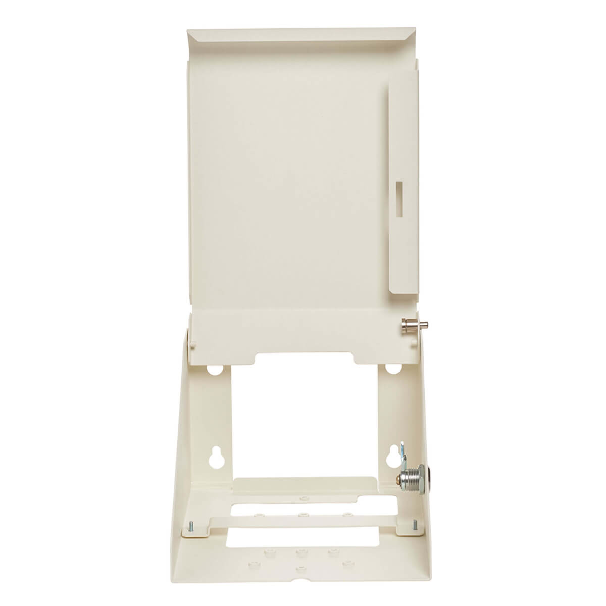 This Wi-Fi access point enclosure features a protective steel cover. It locks securely with the included key to protect its contents against theft, tampering, dust and other contaminants.
