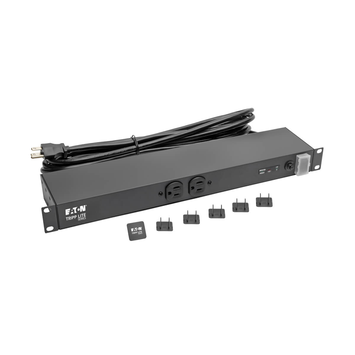 PLUG/OUTLETS: Input: NEMA 5-15P/Output: 12 NEMA5-15R (2 front & 10 rear)