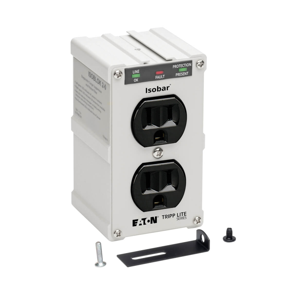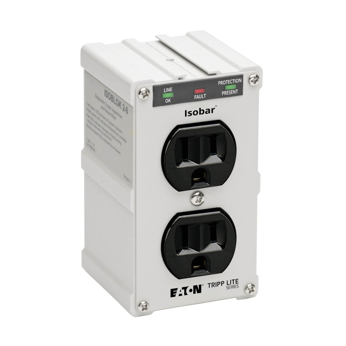 Tripp Lite's Isobar ISOBLOK2-0 Surge Suppressor is ideal for protecting audio/visual devices and printers. This premium direct plug-in surge suppressor features 2 outlets, diagnostic LED, and 600 joules of energy absorption. An all-metal housing stands up to the toughest environments. $10,000 Ultimate Lifetime Insurance (USA & Canada Only). No warranty cards required for coverage!