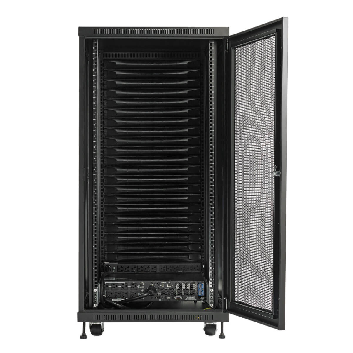 Choose from 40 stock configurations, and you can customize any model for your application. Options include active cooling, extended runtime, KVM switches, console servers, added security, airflow management, cable managers, power cords, network cables and patch panels. You can also upgrade the stock PDU, rack or UPS.