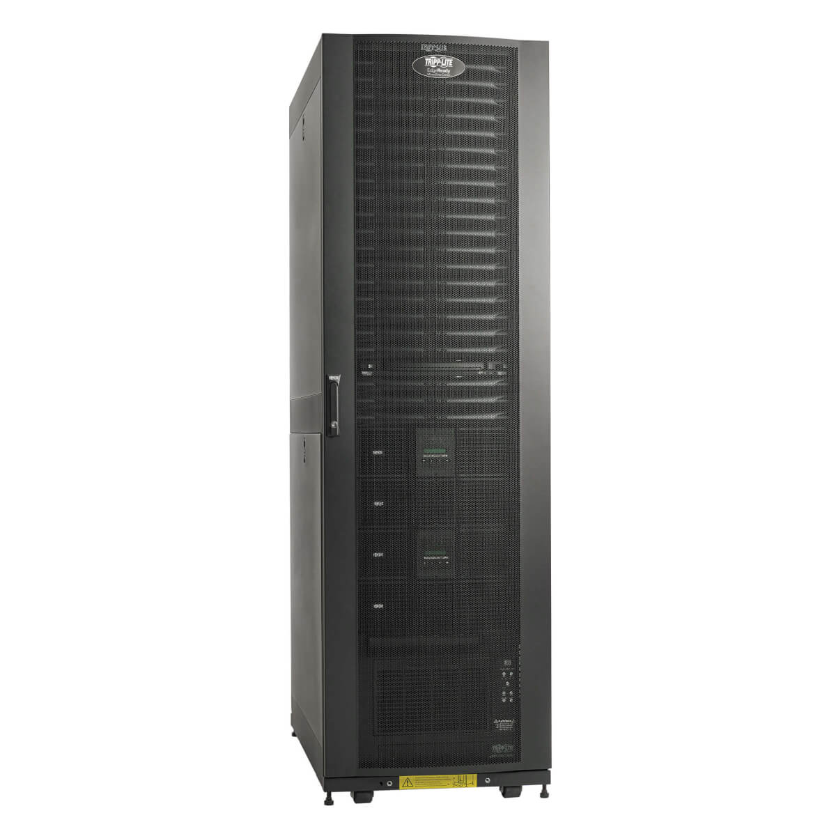 A SmartOnline® UPS system provides voltage- and frequency-independent (VFI) operation, expandable battery backup, zero transfer time and pure sine wave output. On-line double conversion isolates equipment from blackouts, brownouts, overvoltages, transients, surges, line noise, harmonic distortion, electrical impulses and frequency variations to prevent damage, downtime and data loss. Included battery capacity outlasts most power problems, and optional battery packs increase runtime. A metered PDU plugs into the UPS system to provide numerous outlets and digital current metering. An optional switched PDU adds remote current monitoring, threshold notifications and outlet control.
