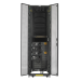 A PCI-compliant steel cabinet with EIA-standard mounting rails secures rack-mounted IT equipment. Doors and side panels lock to prevent unauthorized access, and an optional door-monitoring kit enables remote intrusion detection.
