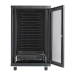 A PCI-compliant steel cabinet with EIA-standard mounting rails secures rack-mounted IT equipment. Doors and side panels lock to prevent unauthorized access, and an optional door-monitoring kit enables remote intrusion detection.