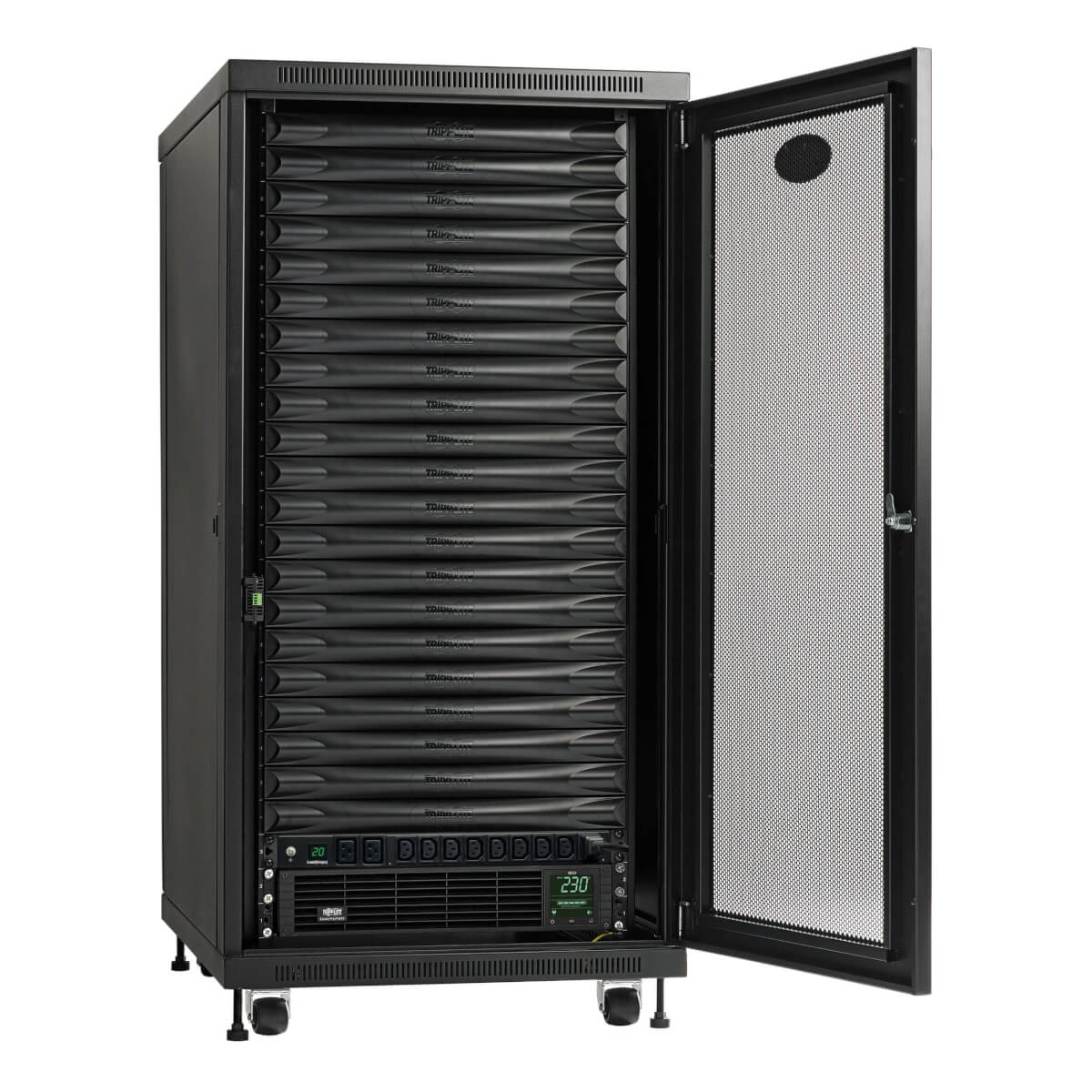 Choose from 40 stock configurations, and you can customize any model for your application. Options include active cooling, extended runtime, KVM switches, console servers, added security, airflow management, cable managers, power cords, network cables and patch panels. You can also upgrade the stock PDU, rack or UPS.
