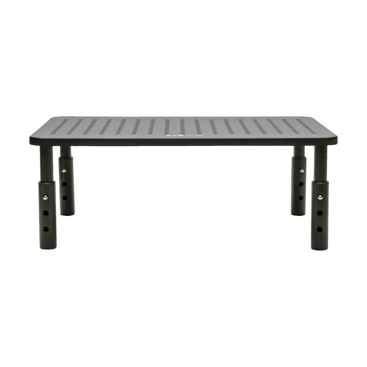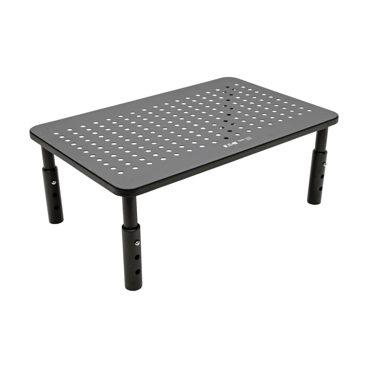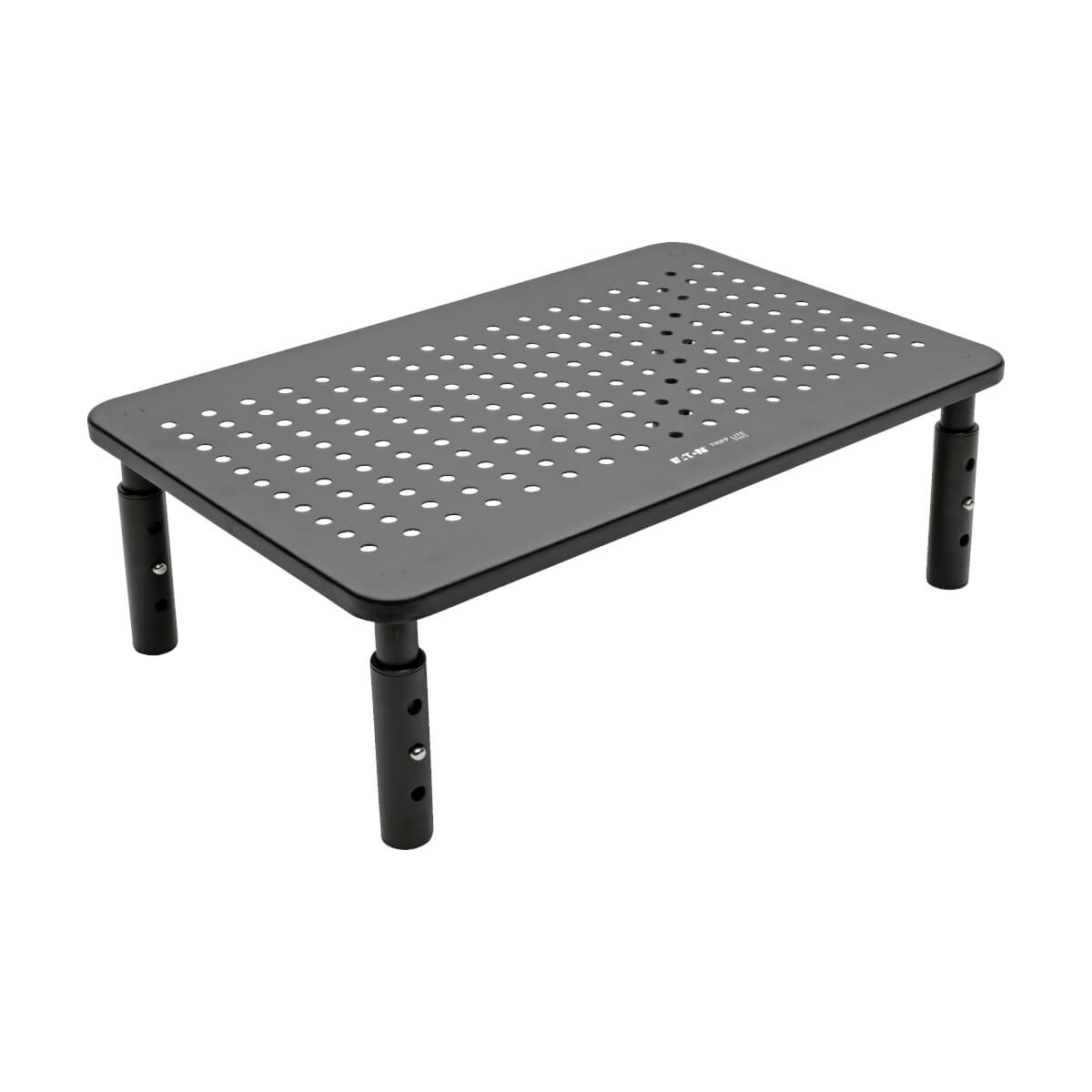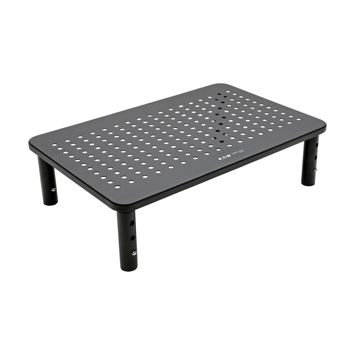 The rectangular metal platform measures 14 x 9 inches and supports monitors, laptops, printers, small televisions and other devices weighing up to 44 pounds. The platform is ventilated to allow proper airflow and help keep your monitor cool. Rubber feet attached to the legs secure the riser in place on a smooth surface. The monitor stand riser assembles in just a few seconds with no tools or permanent mounting required.