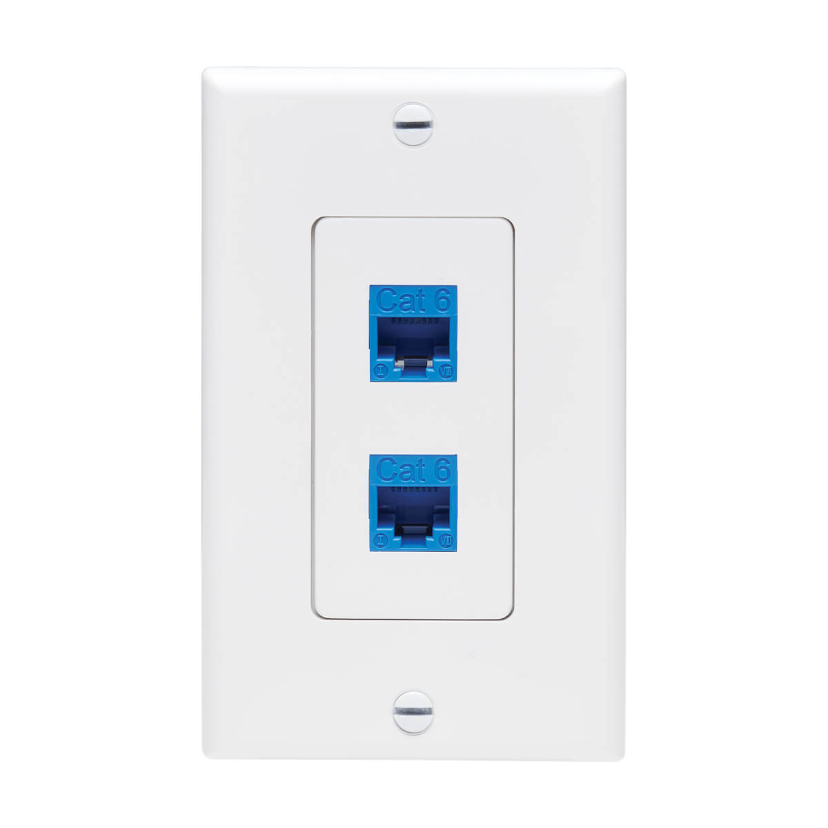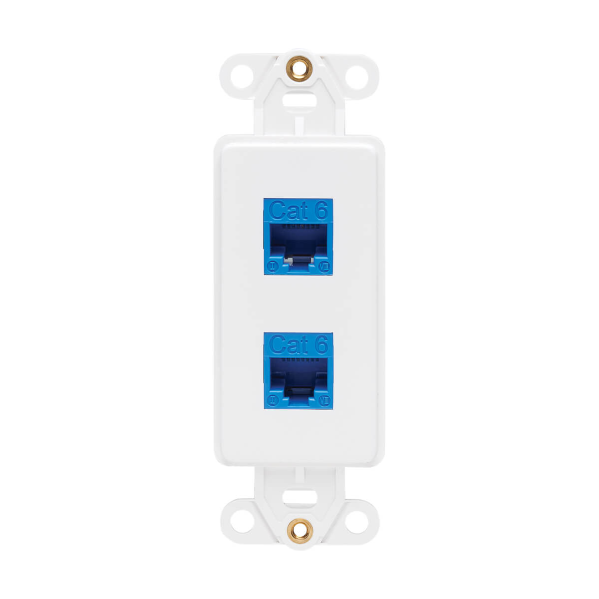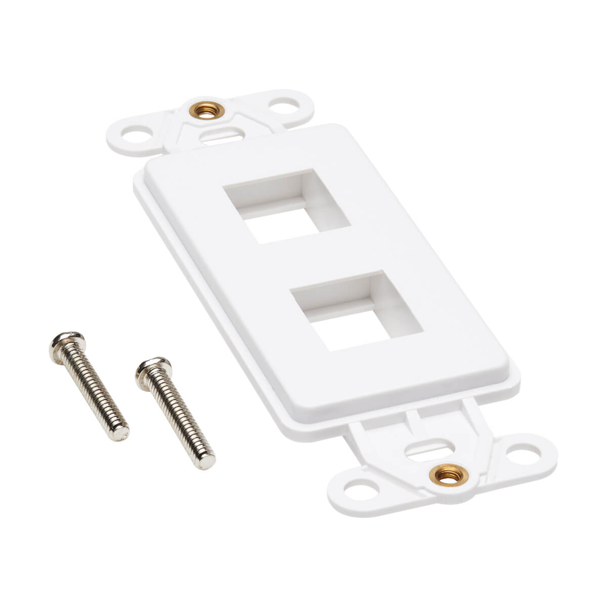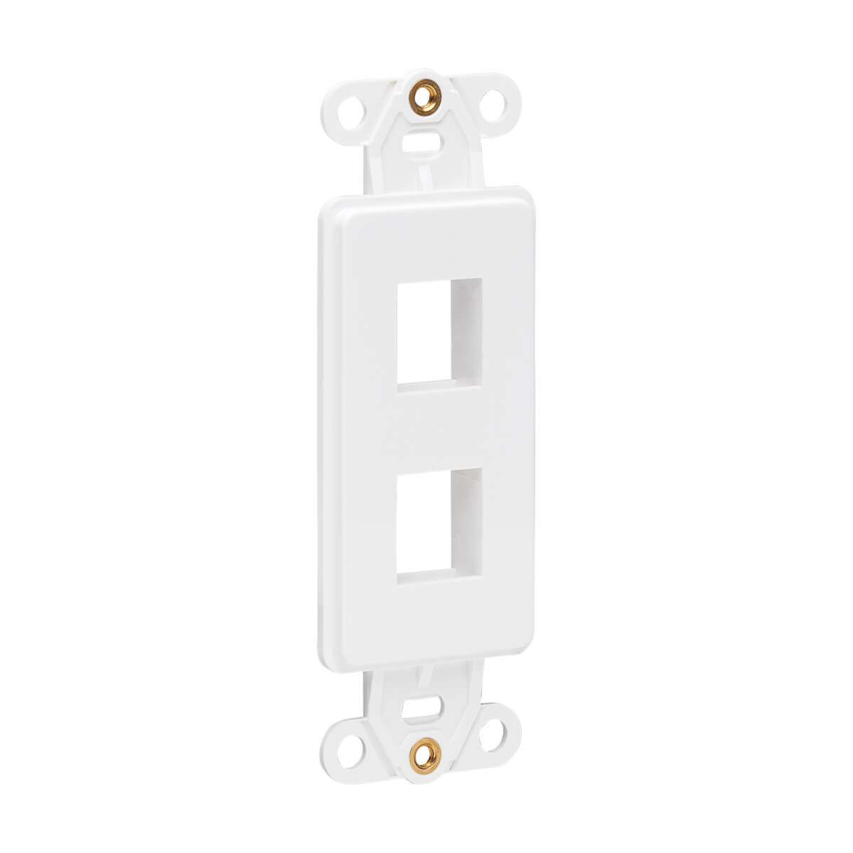 The Decora-style polycarbonate insert plate is white and blends elegantly into any home or office décor for a sleek, professional installation. Mounting screws are included for flush mounting the insert with a compatible Decora-style wall plate (sold separately).