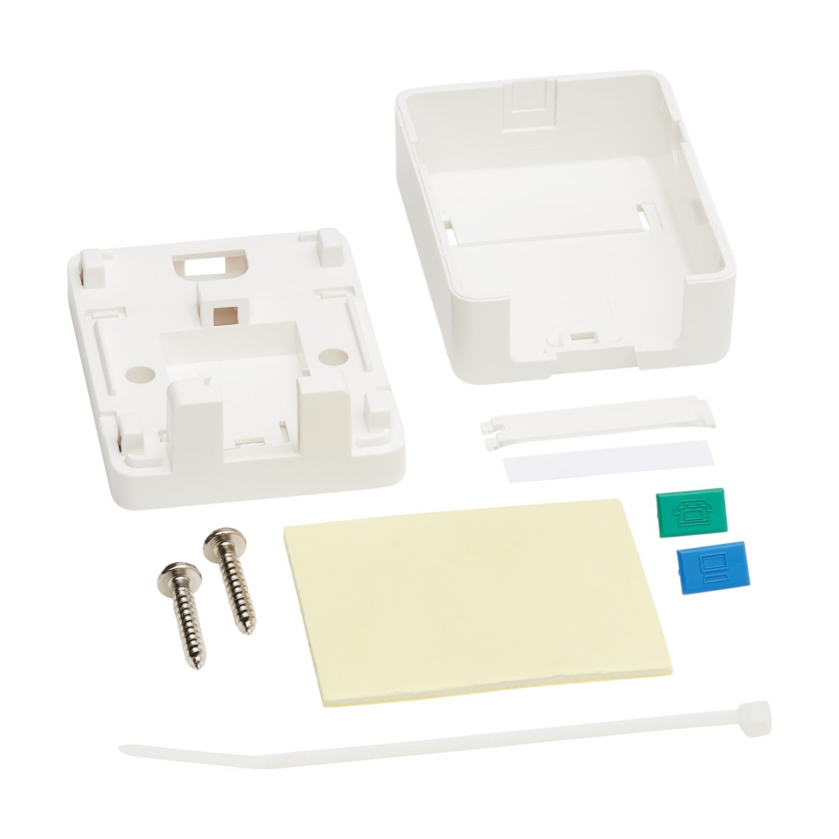 Just snap open the top cover to add the keystone jack, then snap the cover closed. Use zip ties to secure cabling to the box, which features a rear routing slot to allow the box to be installed flush against a wall, ceiling or baseboard. Mounting screws and double-sided tape are included. The flame-resistant ABS UL94V-0 box is white and blends elegantly into any home or office décor for a sleek, professional installation.