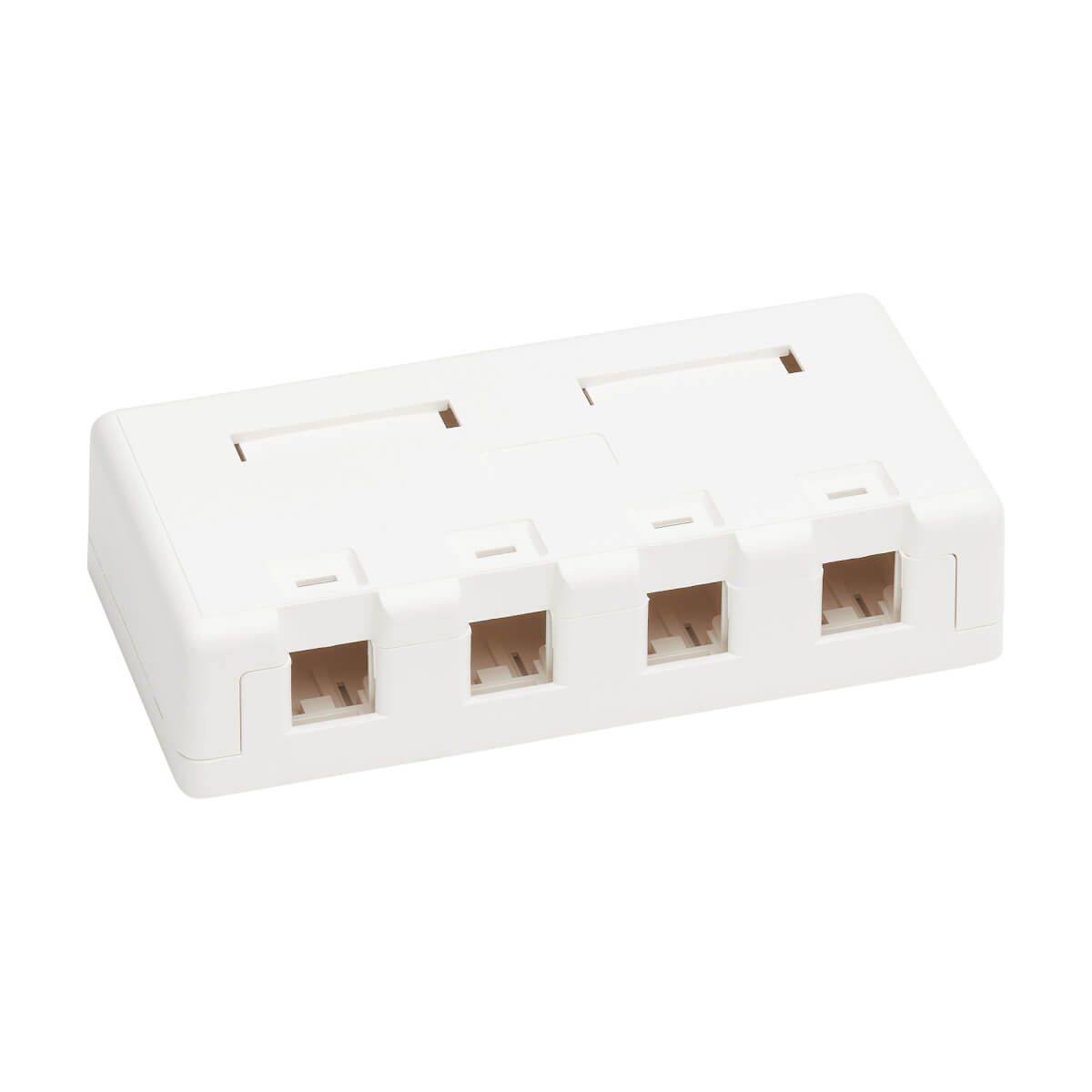 Surface-Mount Box for Keystone Jacks - 4 Ports, White, TAA