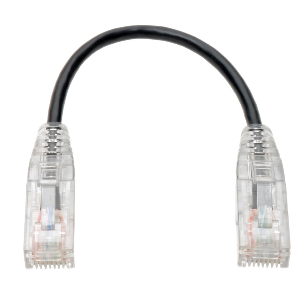 Cat6 Gigabit Snagless Slim UTP Ethernet Cable (RJ45 M/M), PoE, Black, 8-in. (20.32 cm)