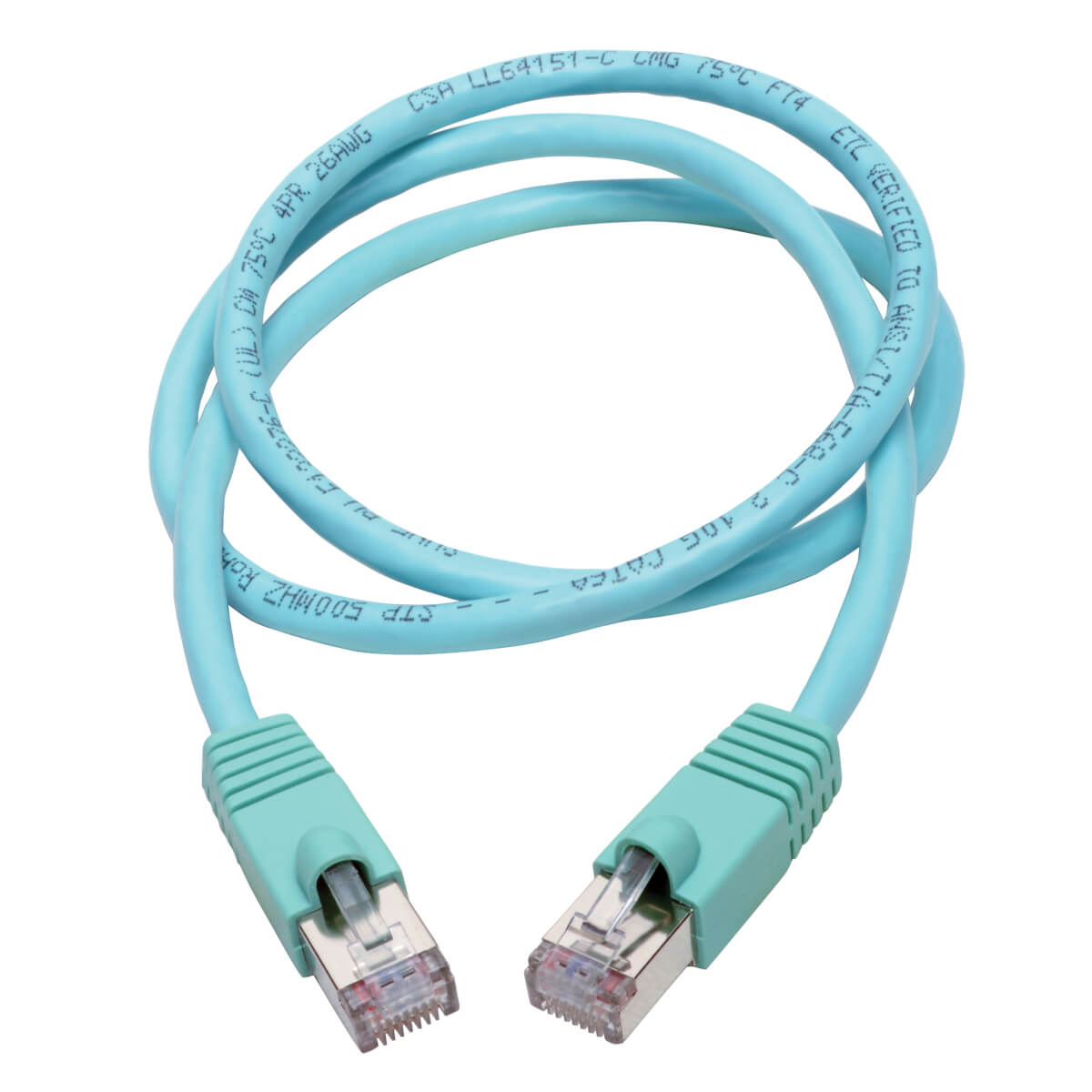 Tripp Lite Series Cat6a 10G Snagless Shielded STP Ethernet Cable (RJ45 M/M), PoE, Aqua, 2 ft. (0.61 m) |