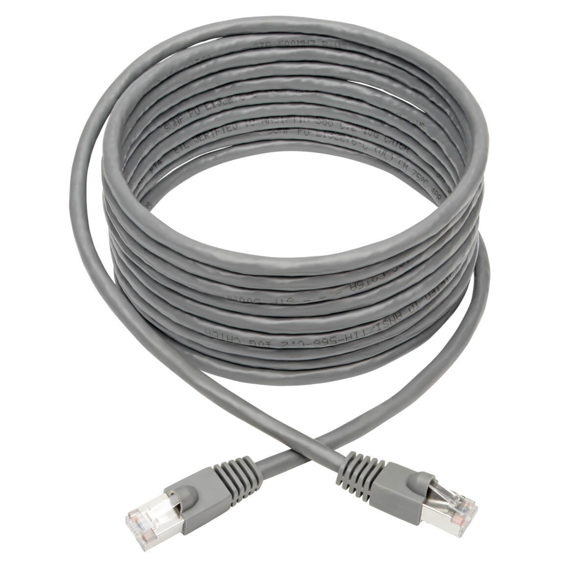 Designed for fast transmission and excellent signal quality, this 14-ft. (4.27 m) gray cable ensures peak performance throughout your local area network (LAN). It reduces impedance and structural return loss compared to standard 100 MHz wire. Premium shielding protects your Ethernet network from disruptive EMI/RFI line noise that can distort or destroy data.