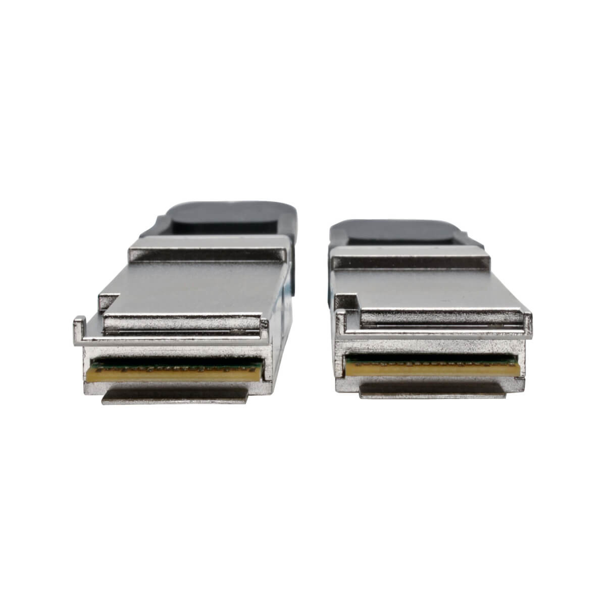 The hot-pluggable QSFP+ connectors include ergonomic push/pull tabs, which are easily accessible in high-density applications and make the cable easy to install and remove with just one hand.
