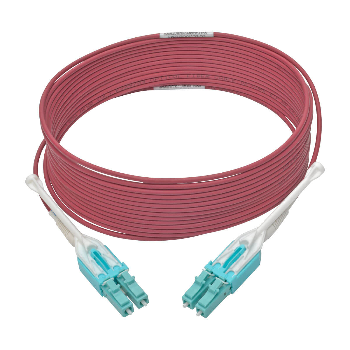 Colored magenta for immediate identification as an OM4 cable, the laser-optimized multimode fiber (LOMMF) N821-05M-MG-T is backward compatible with existing 50/125 fiber and commonly used with vertical-cavity surface-emitting laser (VCSEL) and LED laser light sources.