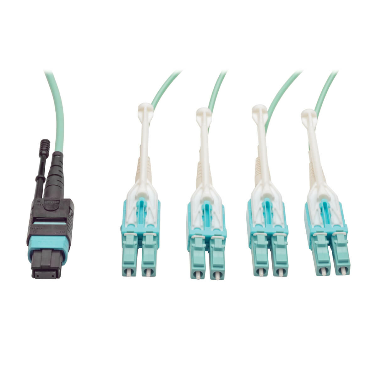 MTP/MPO Fan-out Cable with Push/Pull Tab Connectors, MTP/MPO to 4xLC, 40GbE, 40GBASE-SR4,OM3 Plenum-rated - Aqua, 1M (3.28 ft.)