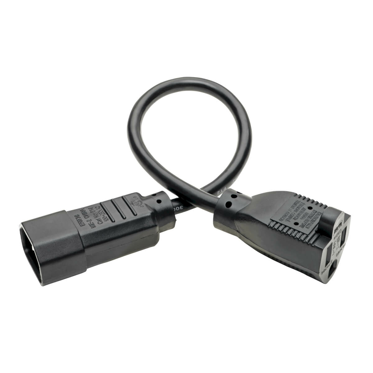 This computer AC power cable is designed for low-voltage data center, server room or home/office applications. This NEMA 5-15R to C14 cord converts a NEMA 5-15P plug into a C14 connector. You can use it to connect a computer, monitor, printer or other device with a NEMA 5-15P plug to a surge protector, UPS system or PDU with C13 power outlets. You can also connect your C13 printer or monitor to a switched source on your PC, allowing you to turn both devices on and off at the same time. The 1-ft. (0.31 m) length helps reduce cable clutter.