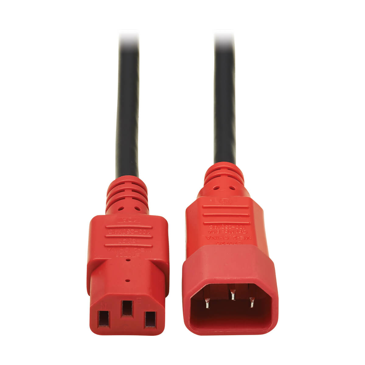 This computer power extension cord features a red SJT jacket and fully molded red ends. The color-coding allows easy, fast identification in a crowded rack or workstation and helps prevent the cable from becoming inadvertently disconnected.