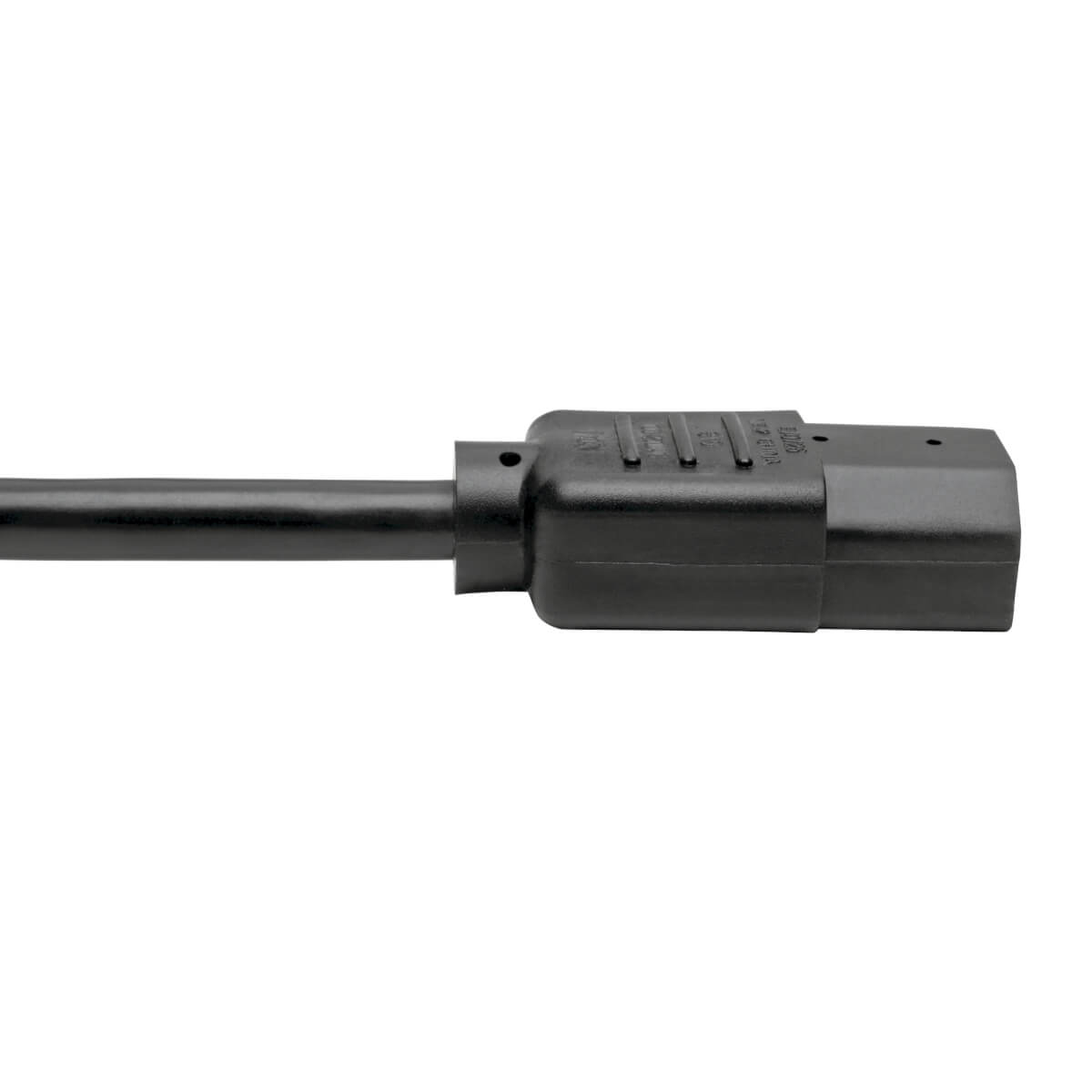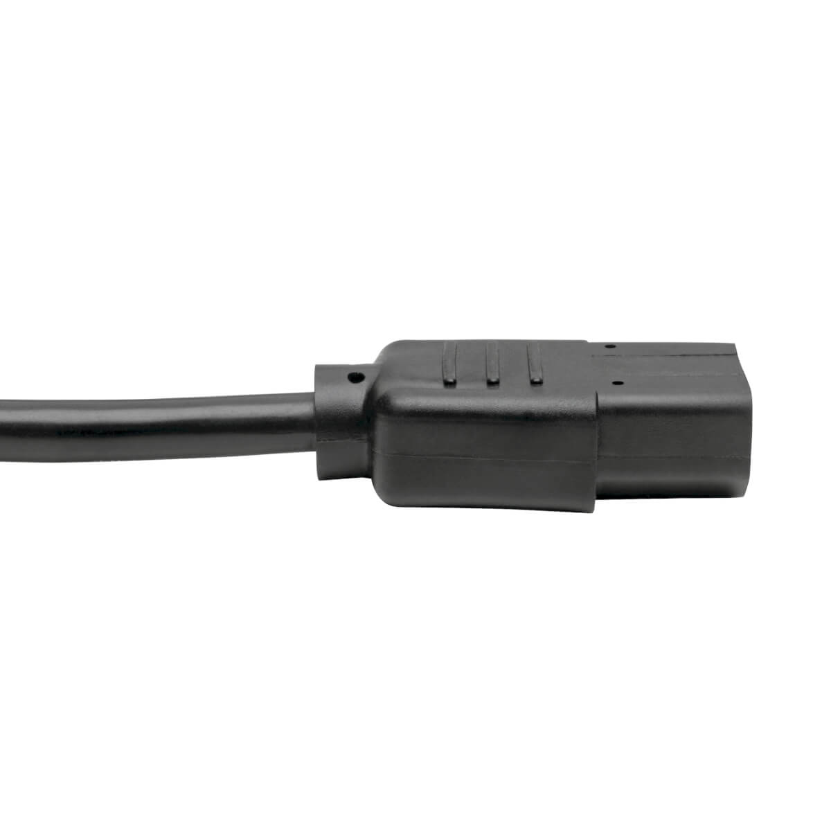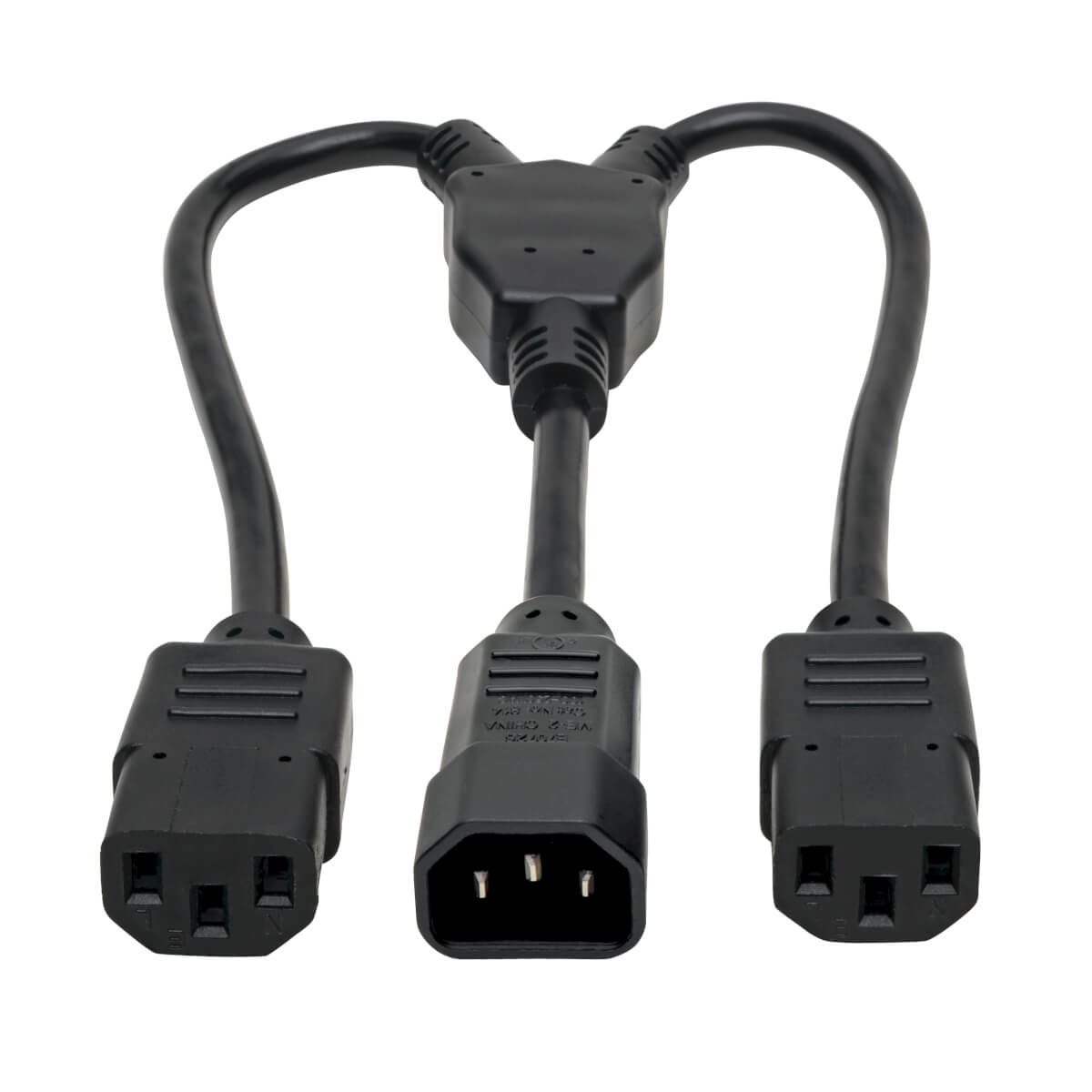 This UL-listed IEC-320-C14 to IEC-320-C13 splitter allows two devices with C14 power inlets to share one AC input cord and one C13 outlet. This C14 male to C13 female cord features a C14 end for connecting to an AC power source on a PDU, surge protector or UPS system and two C13 ends for connecting to devices. By connecting two devices to one outlet in your home office or workspace, the power cord splitter frees up space in a PDU or surge protector and helps reduce cable clutter. The length of the C14 connector to the split is 6" and the length of the two C13 connectors is 12" from the split.