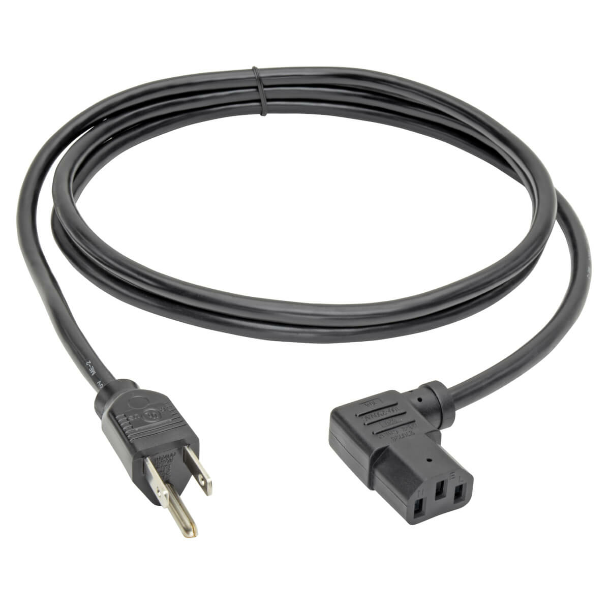 EATON, COMPUTER POWER CORD, NEMA 5-15P TO LEFT ANGLE C13 - 10A, 125V, 18 AWG, 6 FT., BLACK |