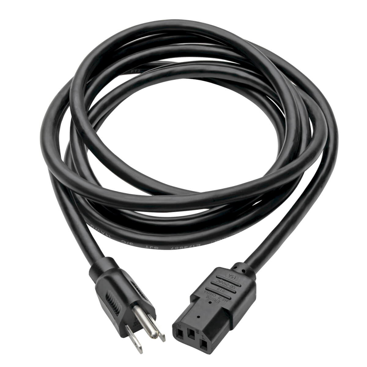 Heavy-Duty Computer Power Cord Lead Cable, 15A, 14AWG (NEMA 5-15P to IEC-320-C13), 3.66 m (12-ft.)