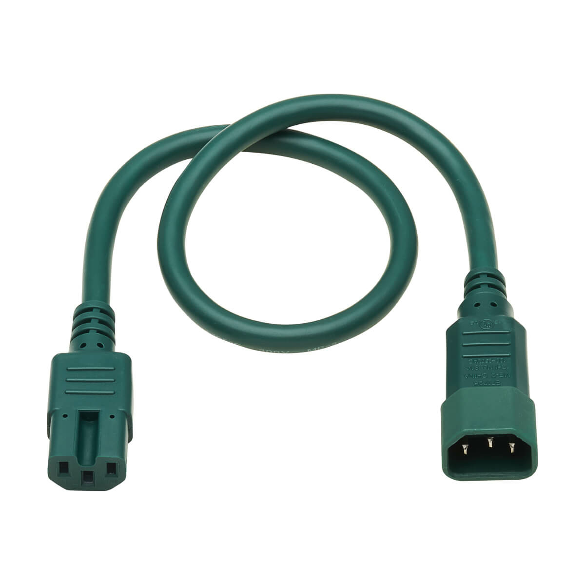 Power Cord C14 to C15 - Heavy-Duty, 15A, 250V, 14 AWG, 2 ft. (0.61 m), Green