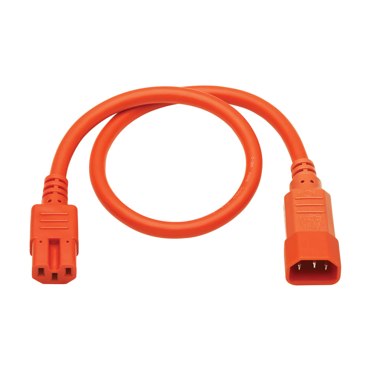 Power Cord C14 to C15 - Heavy-Duty, 15A, 250V, 14 AWG, 2 ft. (0.61 m), Orange