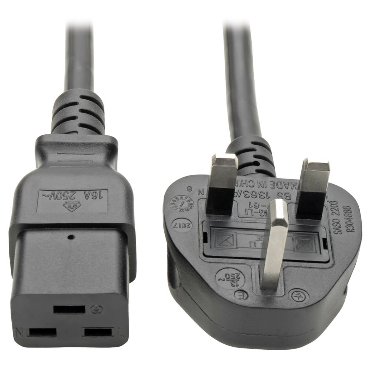 UK Computer Power Cord, C19 to BS1363, 13A, 250V, 16 AWG, 8 ft. (2.43 m), Black