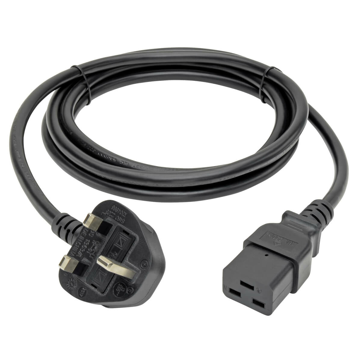 UK IEC Power Cord with C19 to BS 1363 Connection for Powering Network Devices