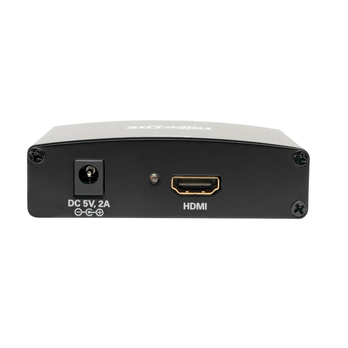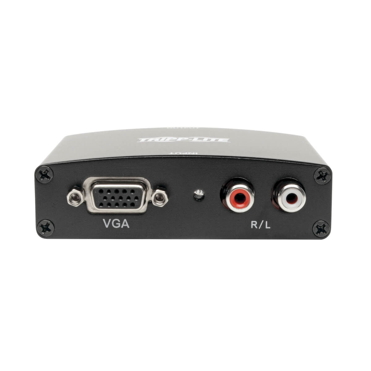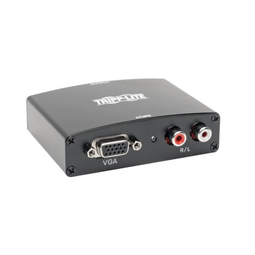 Tripp Lite's P116-000-HDMI VGA + Audio to HDMI converter is the perfect solution for using your older laptop or PC with your new HDMI display. Simply connect your computers VGA and Audio ports to the converter, and the converter to the HDMI port on your display, and you are ready to go. No software or drivers required. If your computer has only a 3.5 mm. Mini Stereo Audio jack, connect it to the converter using a 3.5 mm. to RCA adapter cable such as Tripp Lite's P314-006. You can also convert the RGB Video and Stereo Audio signals on your DVD player, DVR, etc., for use on your HDMI display (Component Video to VGA adapter required) Furthermore, you reduce your equipment costs by eliminating the need to upgrade your computer's video card.