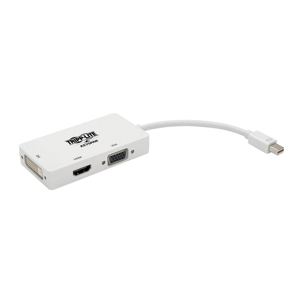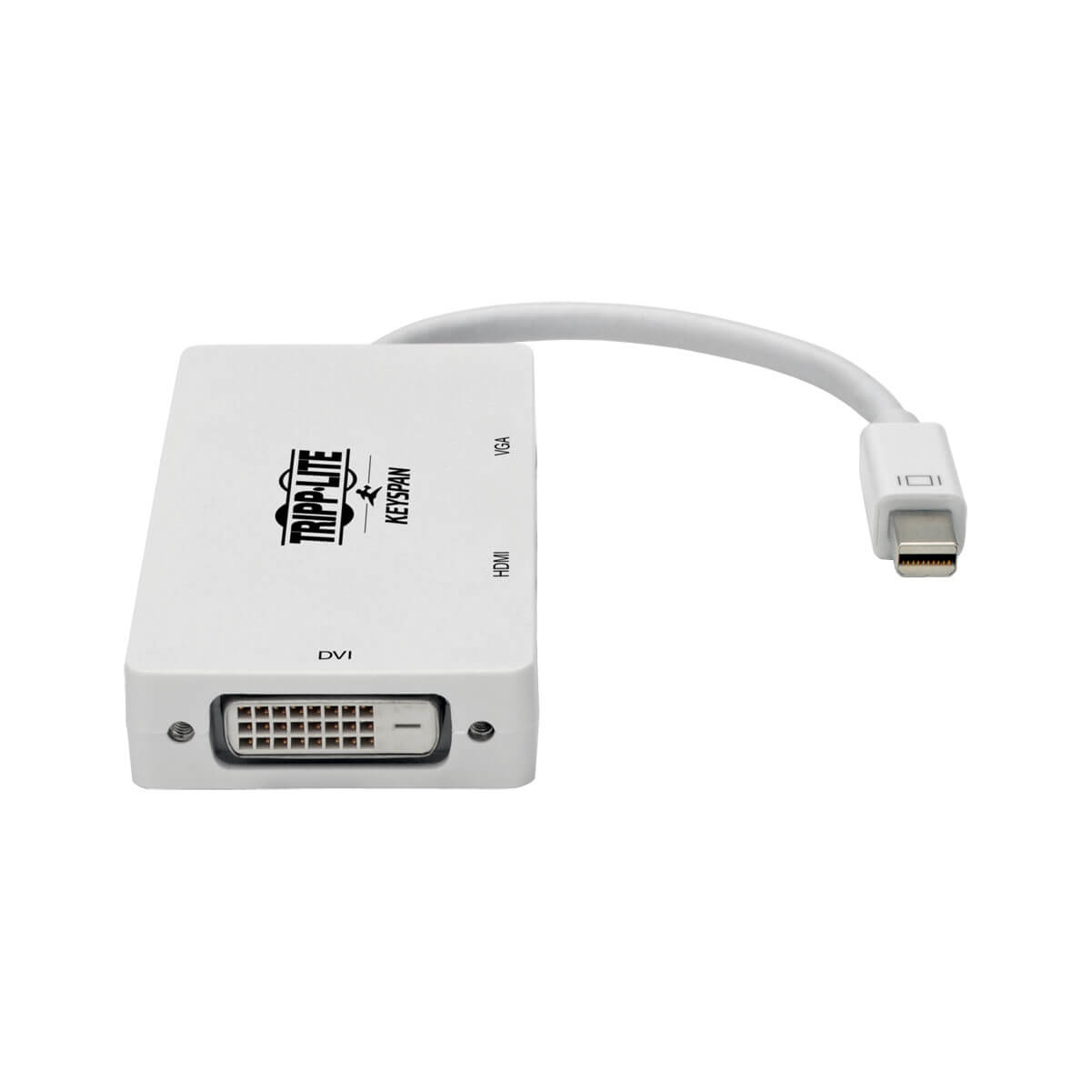 No more carrying around separate adapters for various monitors, projectors and televisions. This Keyspan® Mini DP to HDMI/VGA/DVI adapter connects a VGA, DVI or HDMI display to the Mini DisplayPort or Thunderbolt 1/2 port on your Chromebook, MacBook, Microsoft Surface or other compatible laptop or tablet. Only one display can be connected at a time.