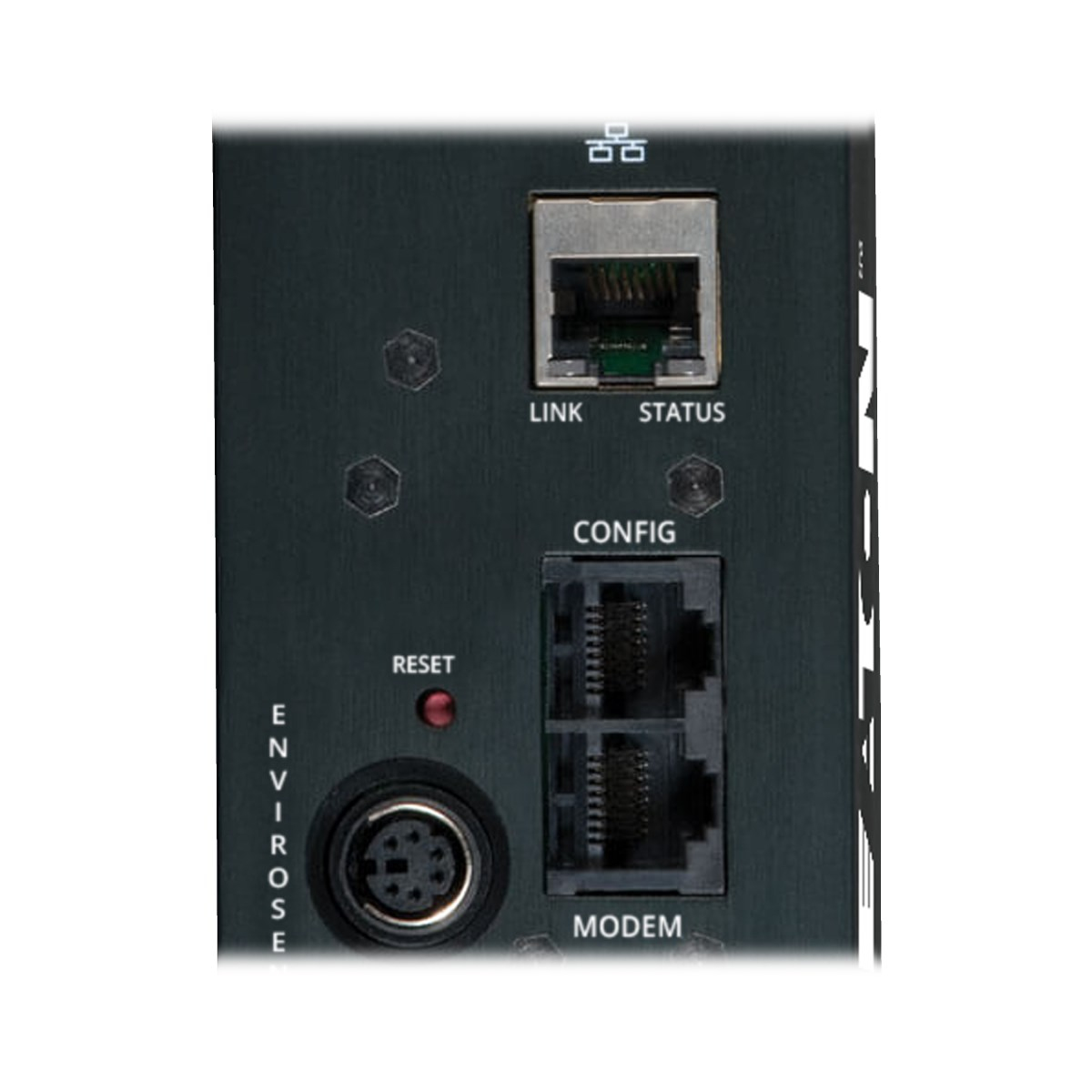 - Supports in-rack environmental reporting with optional ENVIROSENSE temperature / humidity sensor and rack access notification with up to 4 optional SRSWITCH door sensors