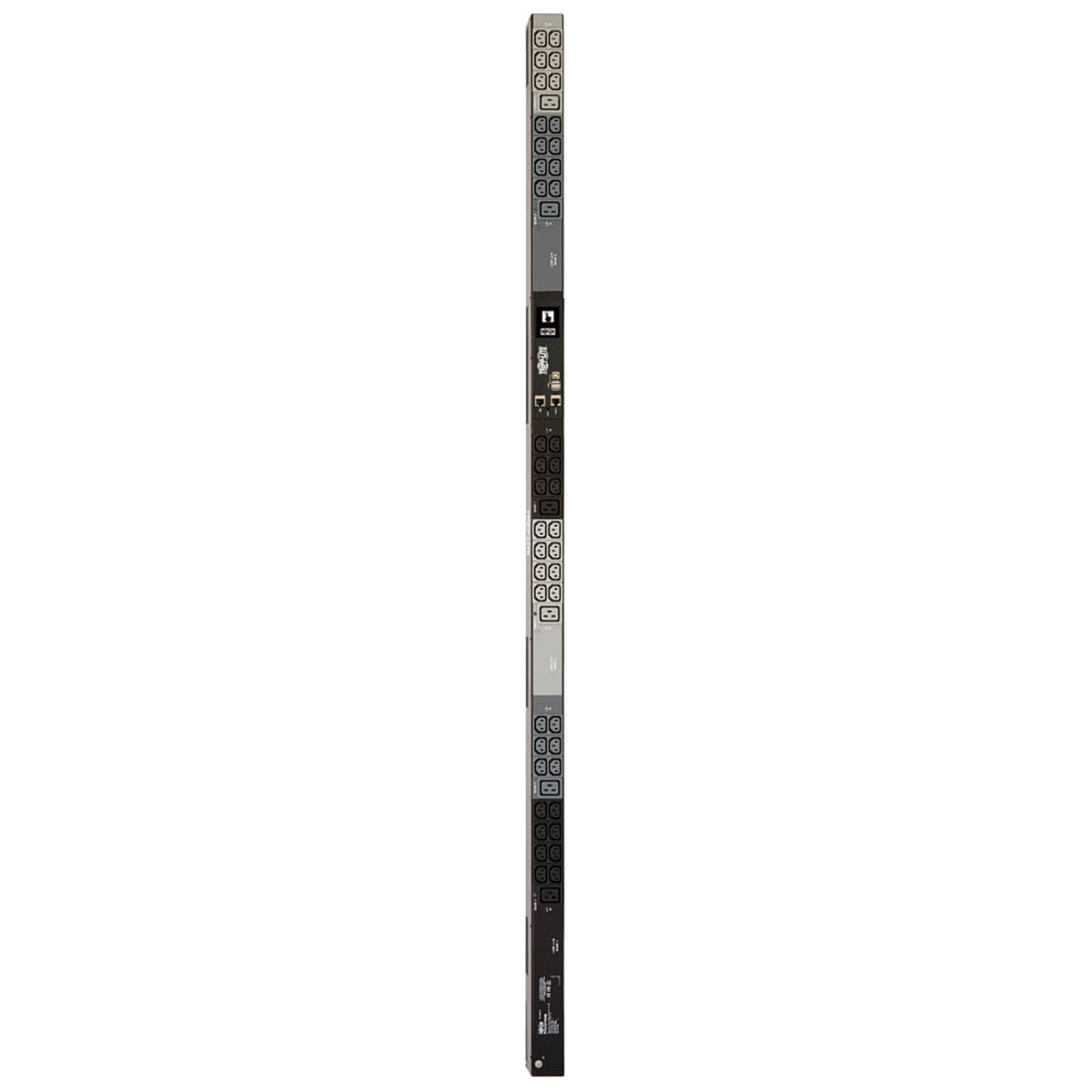 This monitored PDU provides real-time remote monitoring of voltage and load levels via its built-in network interface. Ideal for data centers, server rooms and high-density network closets, the PDU3XEVN6G20 features 42 C13 and six C19 208-240V outlets in three load banks, which distribute AC power to rack equipment. Each load bank is accompanied by an LED that illuminates green when it is ready to distribute power. The banks can be individually monitored to ensure proper load balance and prevent downtime. Plug-lock insert sleeves are included to prevent connected cables from becoming accidentally dislodged.