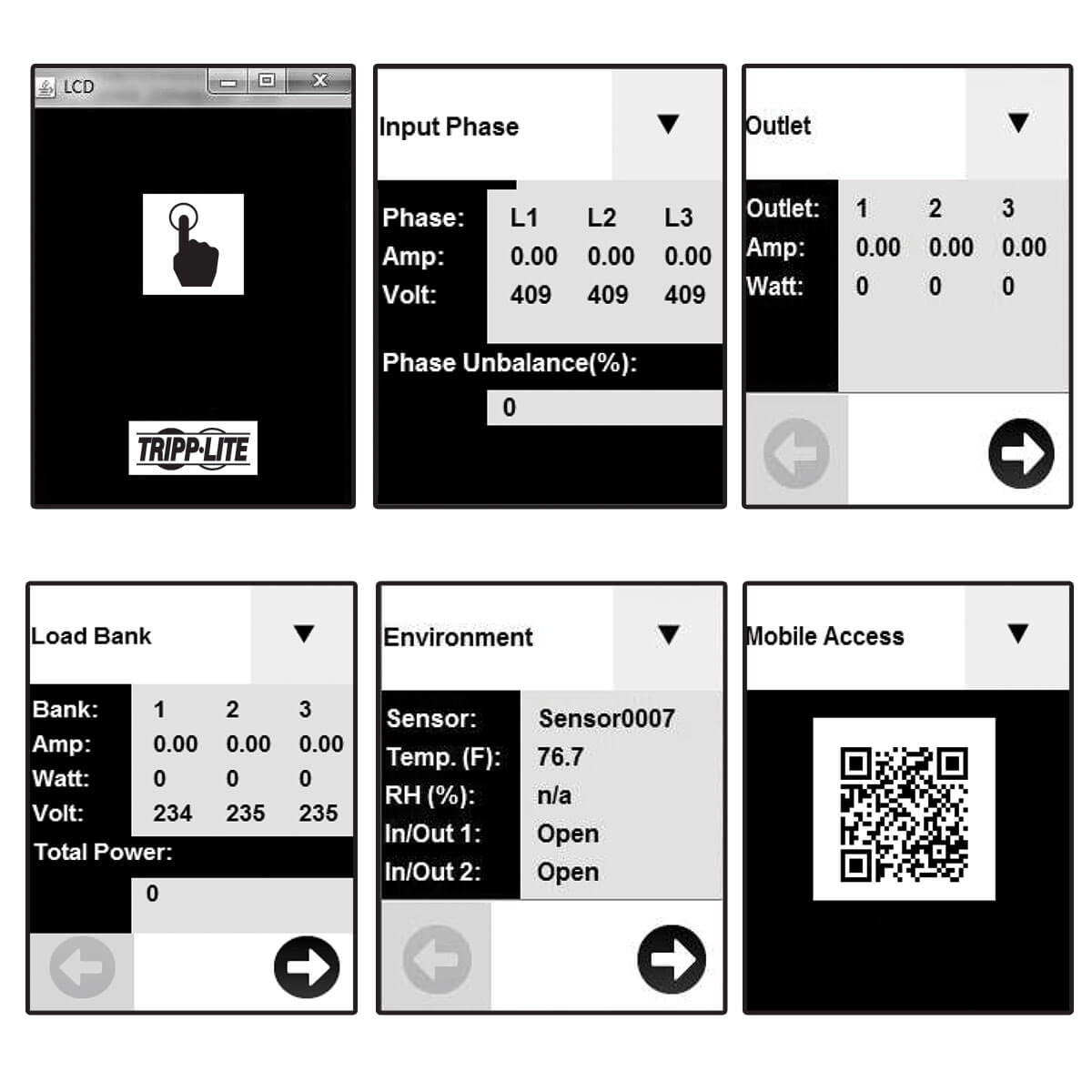 A color touchscreen LCD lets you toggle between menus to monitor input current level per phase, output current per load bank and per outlet with ±1% billing-grade accuracy, environmental sensor data and network information. It also generates a unique QR code to allow access to the switchable PDU through a mobile device.