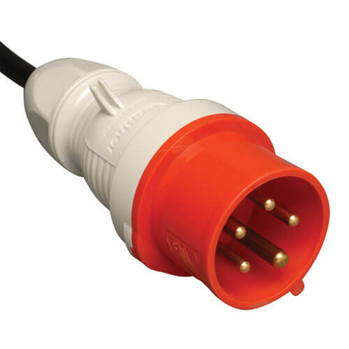 Attached IEC-309 Red 16A (3P+N+E) 400V 3 phase input plug with 3m cord