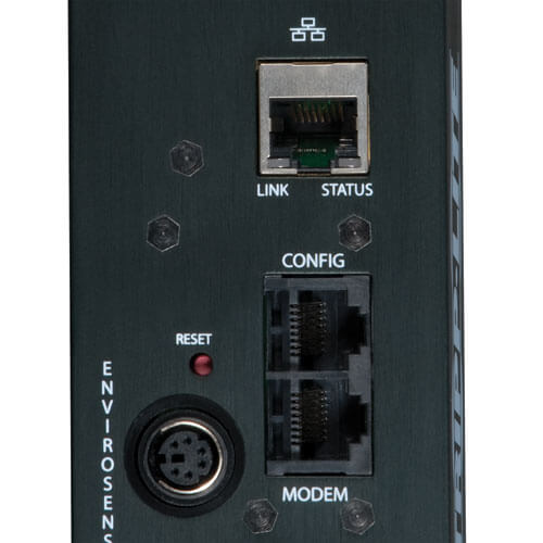 Supports in-rack environmental reporting with optional ENVIROSENSE temperature / humidity sensor and rack access notification with up to 4 optional SRSWITCH door sensors