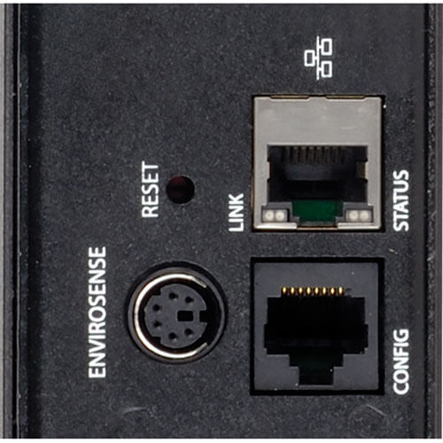 Supports in-rack environmental reporting with optional ENVIROSENSE temperature / humidity sensor and rack access notification with up to 4 optional SRSWITCH door sensors