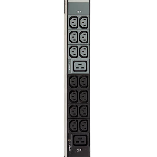 48 208-240V outlets (42 C13, 6 C19) in 3 single phase load banks