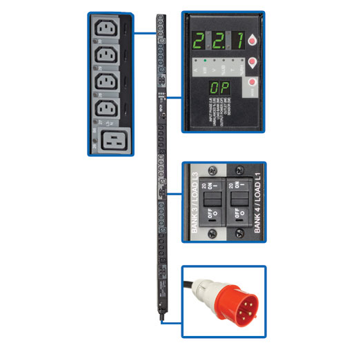 ● 22.1kW Switched 380/400V input 220/230V output PDU with built-in web/network interface
