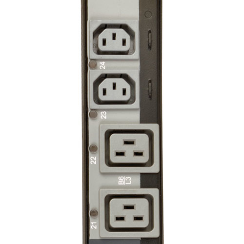 Tripp Lite 3 phase Switched PDU / Power Distribution Unit offers advanced network control and monitoring with the ability to turn on, turn off, recycle or lock-out power to each individual receptacle, monitor site electrical conditions and remotely monitor output power consumption per-phase or per-receptacle. PowerAlert interface supports remote control and custom notification of user-specified conditions via email, secure web, SNMP, Telnet or SSH interface. Individually switched outlets can be controlled in real-time to remotely reboot unresponsive network hardware, or be custom programmed for user-defined power-up and power-down sequences to ensure proper startup of interdependent IT systems and prevent inrush-related overloads as network equipment is first energized. Unused PDU outlets can be electronically locked off to prevent the connection of unauthorized hardware. PDU output current consumption in amps per-phase or per-receptacle can be displayed locally via visual meter or remotely via web/network interface to warn of potential overloads before critical IT mains or branch breakers trip. Highly accurate current metering offers +/-1% billing-grade current monitoring and recording ability for each output phase, breakered load bank and individual outlet.