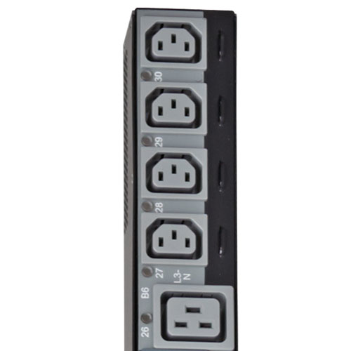 ● 30 switched 240/230/200V outlets (24 C13, 6 C19) in 6 separately breakered 20A single phase load banks