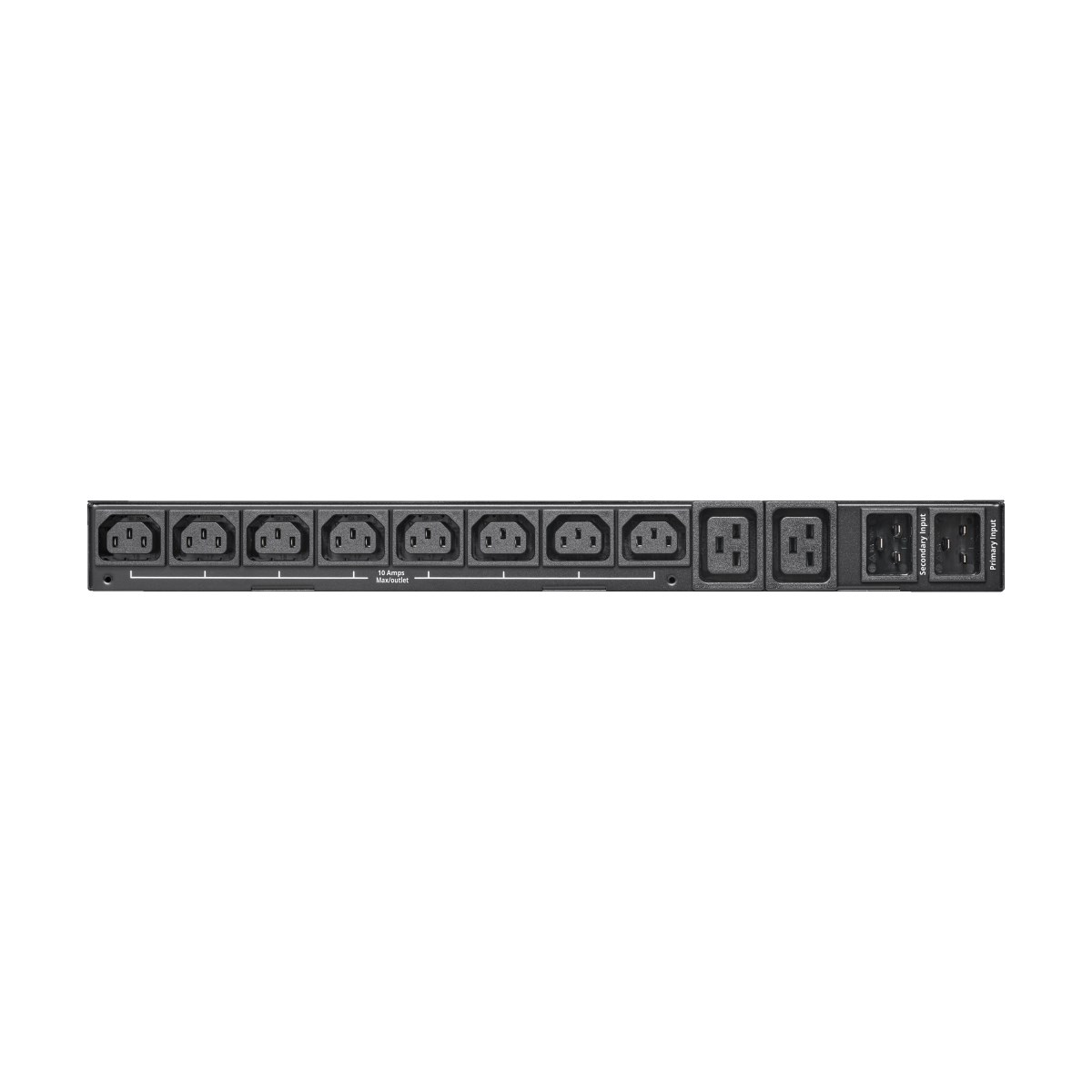 3.8kW 200–240V Single-Phase ATS/Monitored PDU - 8 C13 and 2 C19 Outlets, Dual C20 Inlets, 12 ft. Cords, Network Card, 1U, TAA