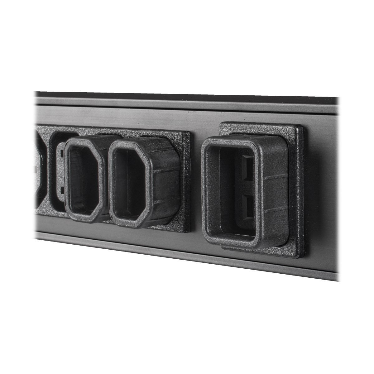 The 63.75-inch all-metal housing supports 0U vertical mounting in an EIA-standard 19-inch rack using the included toolless mounting buttons or the included mounting clips and hardware. You may also use the clips to secure the PDU to a wall, counter or other flat, secure surface. Included C20 and C14 plug-lock inserts attach to the connected components’ plugs to keep them connected and the devices continuously powered.